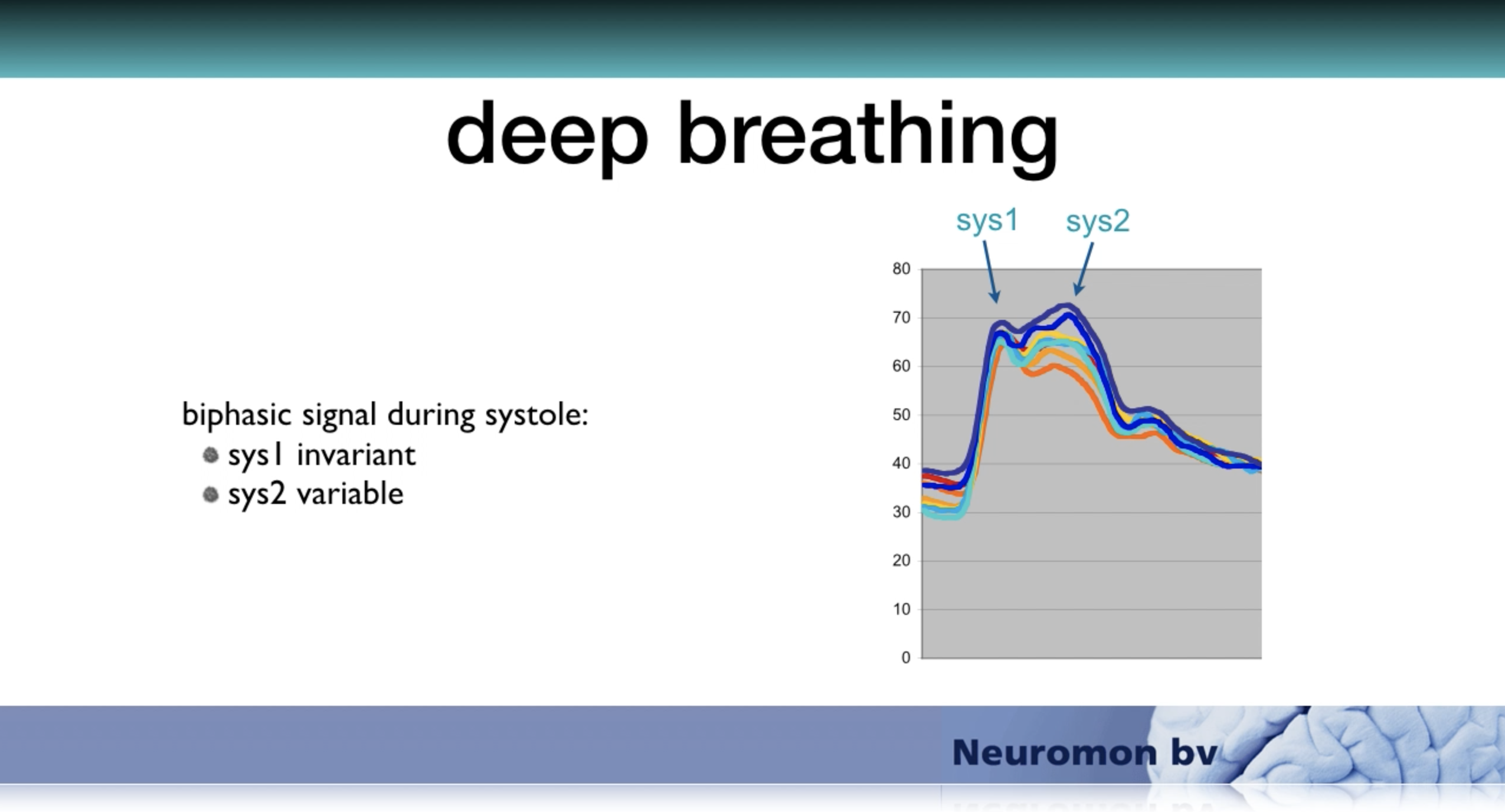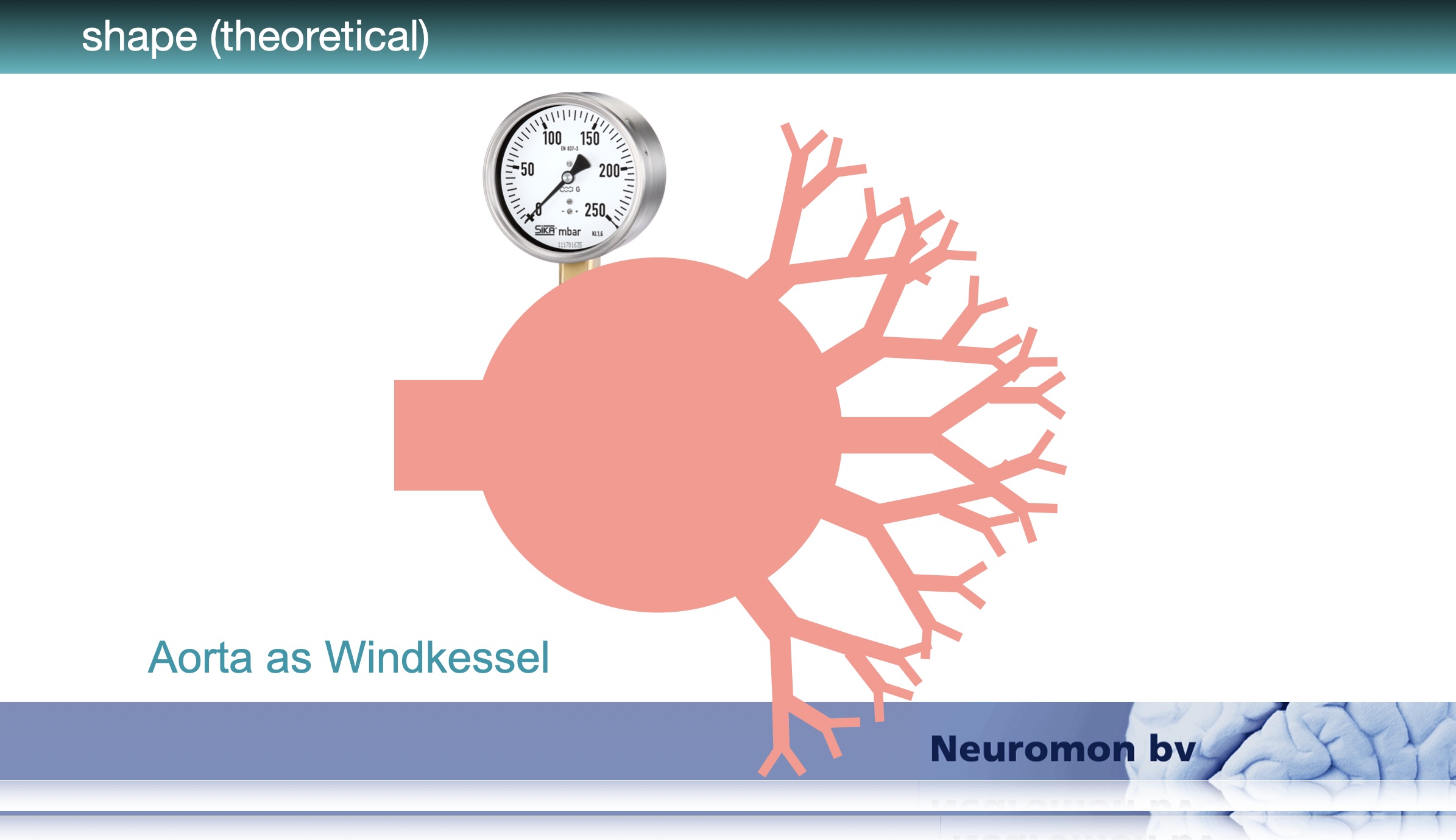 Central to the work of Neuromon B.V. is the theory of arterial acceleration. This theory proposes that the pressure wave of the heart is amplified by a shortlasting contraction in the conducting vessels of the arterial tree: Sys1. The second phase of systole (Sys2) is the result of the stroke volume being ejected into the aorta. The propagation of the Sys1 is presumably faster than of Sys2, since the first is based upon a rapidly spreading depolarization within the smooth muscle cells of the arterial wall via the abundant presence of gap junctions. The propagation of the Sys2 wave is slower since it is dampened by the visco-elastic properties of the arterial tree.