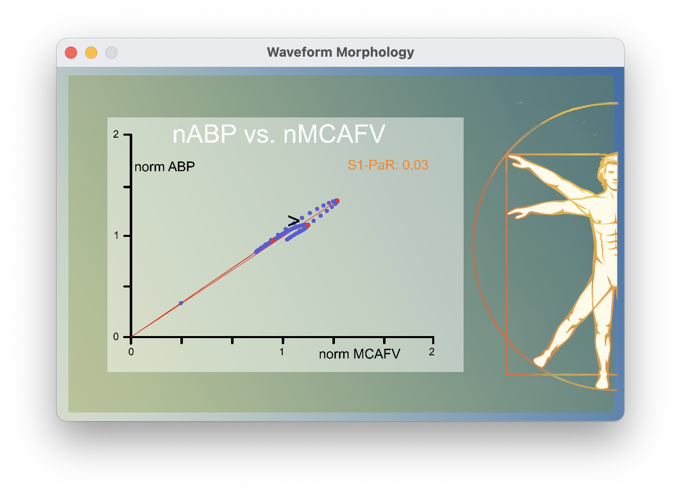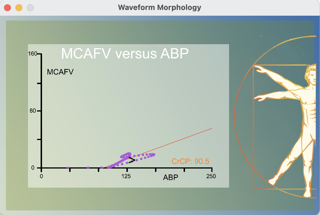 And the following waveforms (red curve is arterial blood pressure (ABP) and blue curve is right middle cerebral artery flow velocity (MCAFV)):