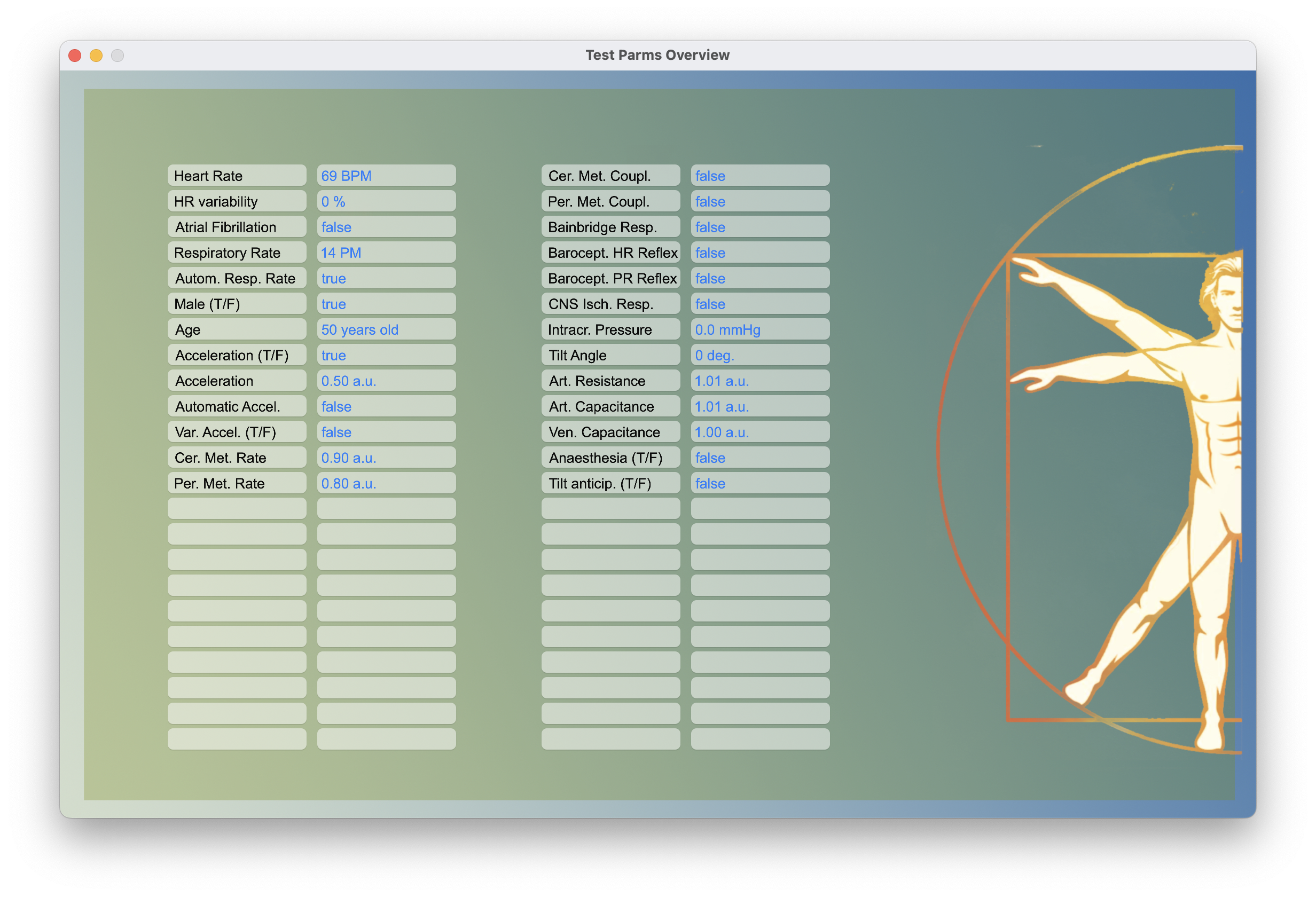The working of this parameter can be demonstrated in Neuromon's cardiovascular simulation. Let's start with simple settings of the model: no reflex activity but with arterial acceleration active.