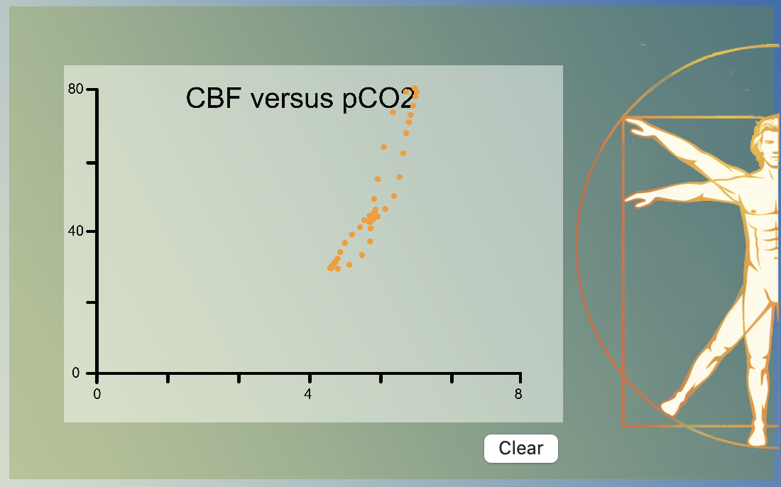 In the above graph the CBF changes dramatically with changes in pCO2. There is hysteresis during the test because the changes in blood pCO2 caused by changes in respiratory activity take time to reach the brain (circulation time): the CNS ischemic response lags upon changes in blood pCO2.