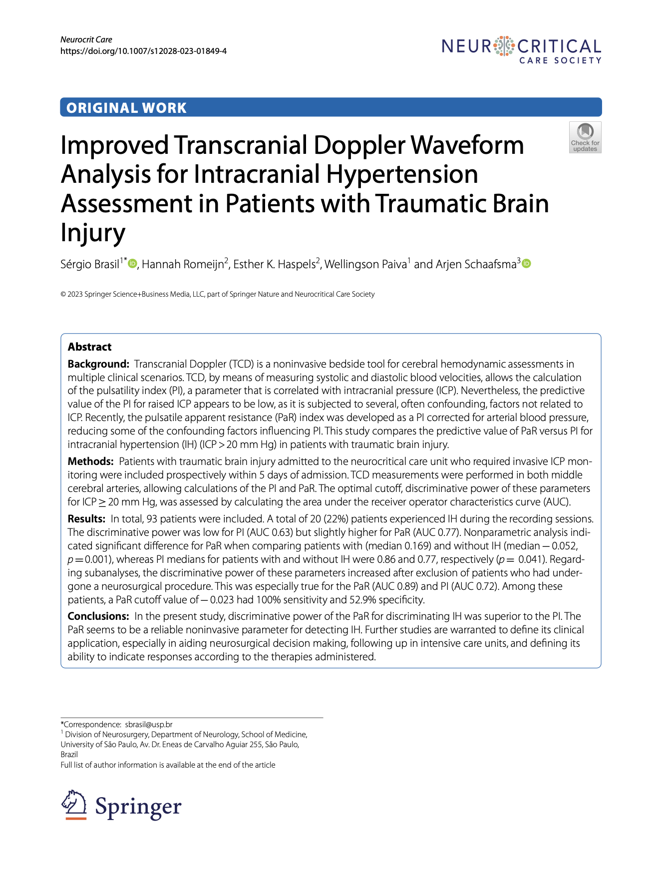 Read more in our publication published in Neuro Critical Care: an international collaboration between investigators in Brasil and the Netherlands.